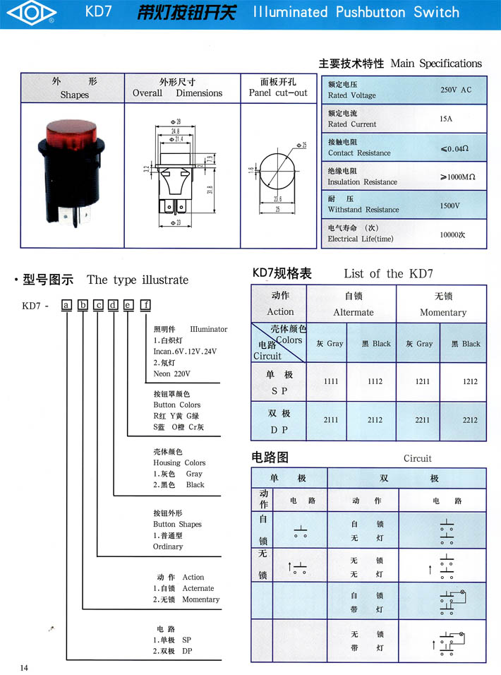 • KD7系列帶燈按鈕開關 產品型號:KD7系列帶燈按鈕開關