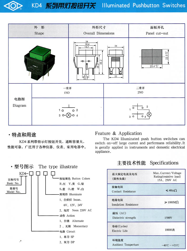 產(chǎn)品型號:KD4系列帶燈按鈕開關(guān)